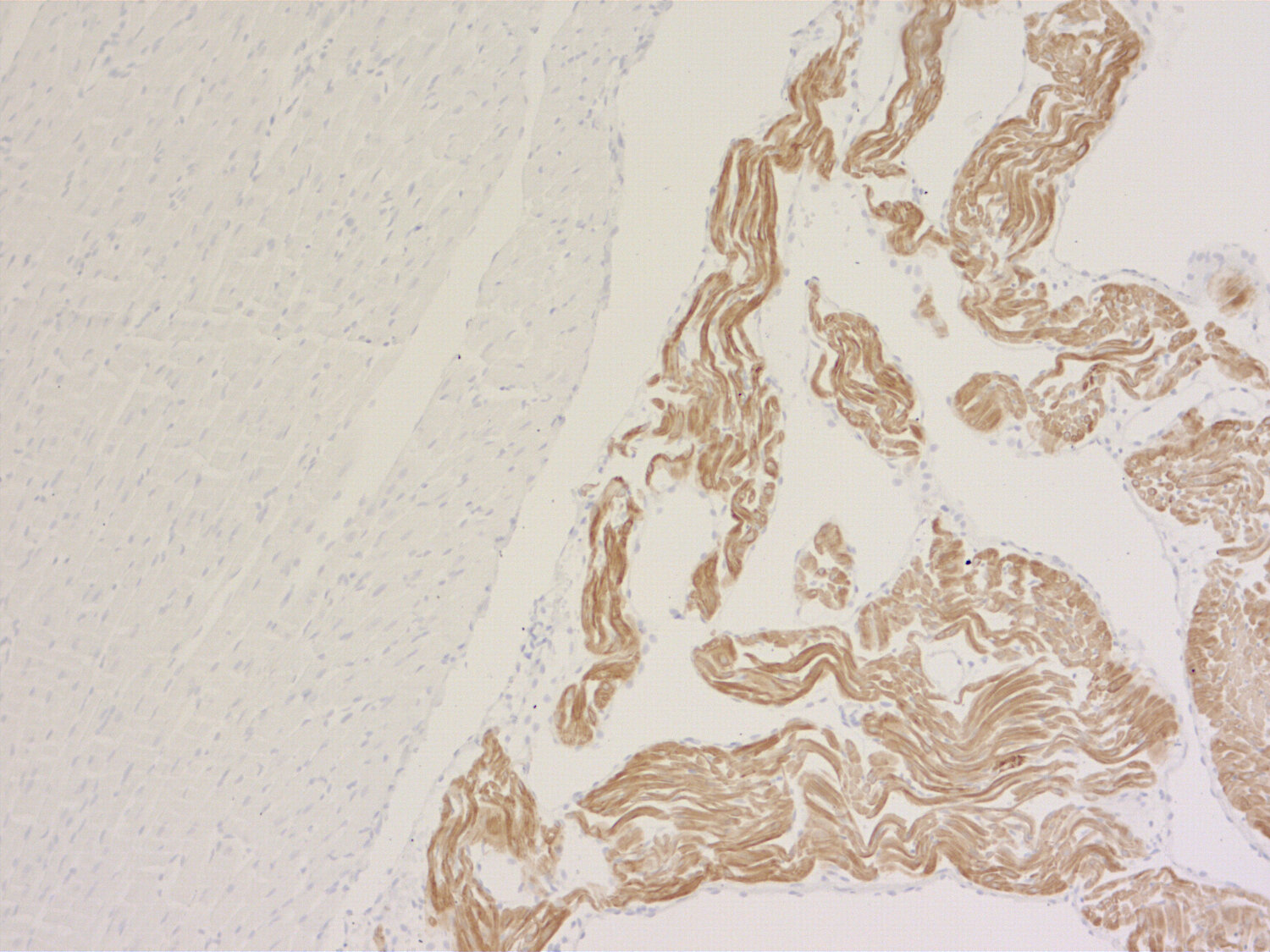 This monoclonal antibody is a useful tool to distinguish between ventricle and atrium specific cardiomyocytes.