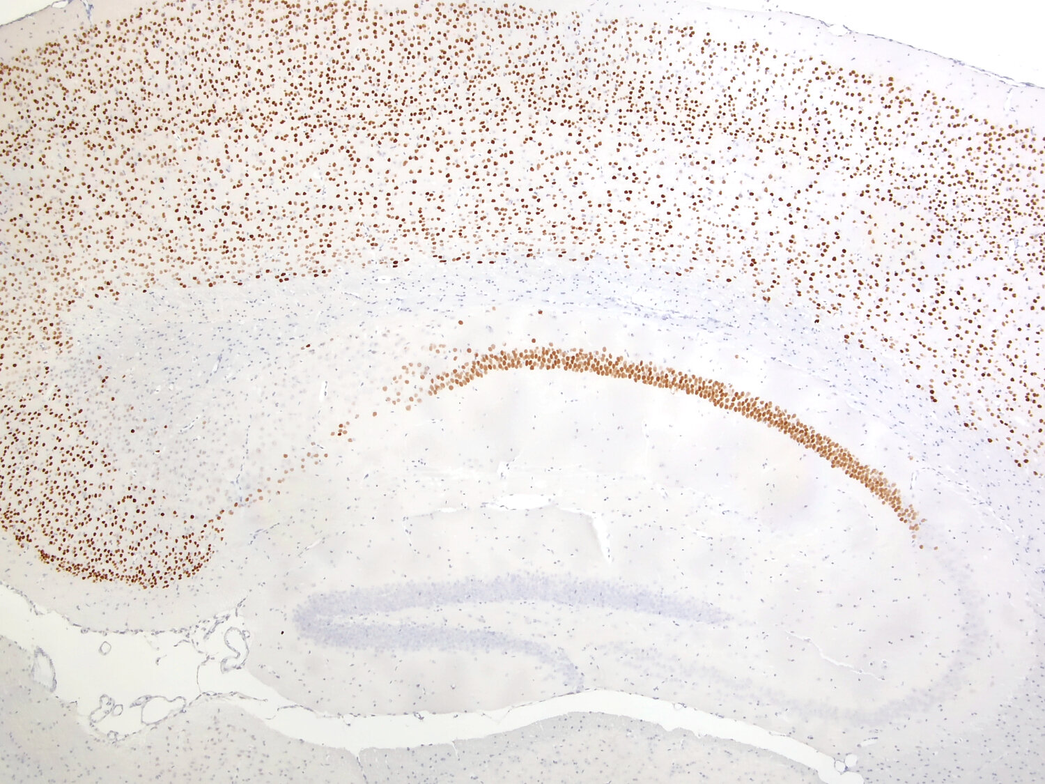 Together with Ctip 2, Coup-TFI, and Fezf2 it is involved in the fine-tuned sequential formation and specification of the different excitatory neuron populations forming the definitive six-layered cortical structure (1-4).