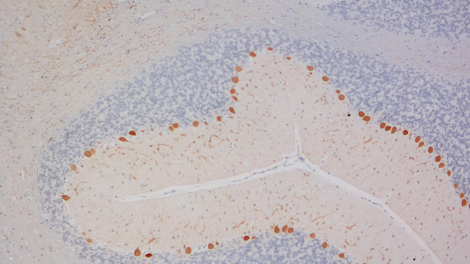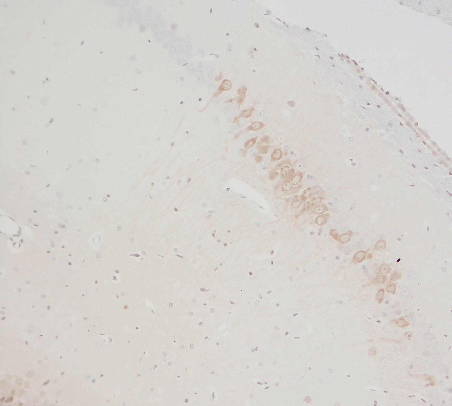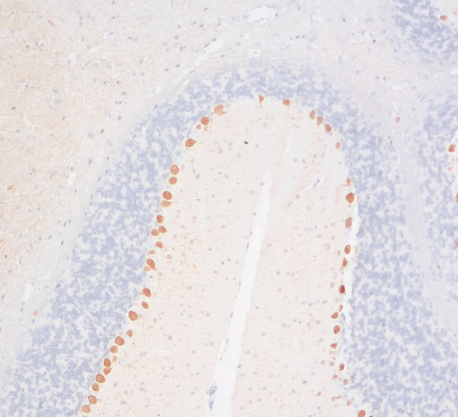 Purkinje-cell protein 4 (PCP4) also known as PEP-19, is a small calmodulin (CaM)-binding protein that exhibits high expression levels in cerebellar Purkinje cells. PCP4 also occurs in neocortical structures, especially in the deep layers, and in other cortical structures and parts of the hippocampus. Furthermore, the olfactory bulb and caudate putamen show high PCP4 levels (1). PCP4 selectively binds to the C-domain of CaM via an IQ motif (2) and modulates CaM signaling by acting at the level of Ca2+ binding to CaM (3).