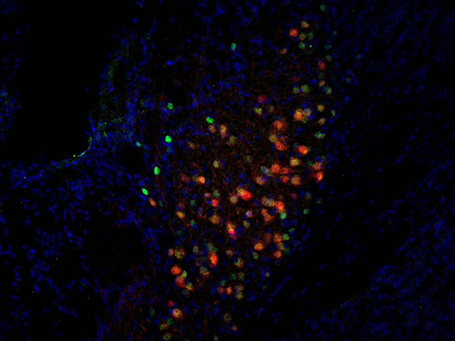 T-bet (also known as Tbx21) belongs to the T-box subfamily Tbr1, and is an important transcription factor for the immune system. T-bet is a potent transactivator of the IFNγ gene and its expression correlates with IFNγ expression in Th1 cells, NK cells, and B cells (1). In CD4 T cells, Th1 and Th2 lineage commitment is regulated by opposing actions of T-bet and GATA-3 (2). T-bet promotes CD4 Th1 differentiation and represses alternative cell fates like Th2, or Th17, whereas GATA-3 is the lineage determining transcription factor for Th2 cells (2). CD8+ T cells require T-bet expression to differentiate into effector cells (3). In NK cells, T-bet expression is required for NK cell maturation (4).